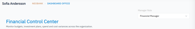 The Financial Control Center empowers Finance Managers with a single, role-focused workspace to control spending, improve forecast accuracy, and support informed investment decisions across the organization.