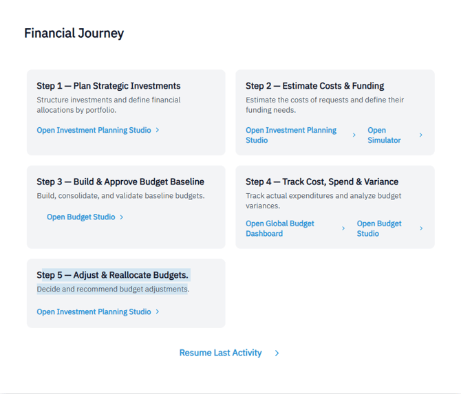The Financial Journey guides Finance Managers through a structured, end-to-end financial management lifecycle.