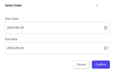 3.A dialog box will prompt you to confirm the Start Date and End Date.