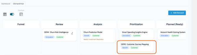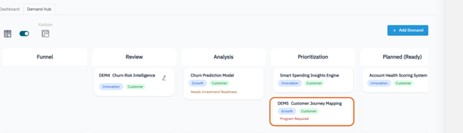 Transitioning a demand from Prioritization to Planned marks the shift from strategy to execution.