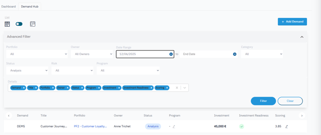 Portfolio → Plan → Demand Management Studioor directly from the Portfolio Office. - Click the Demand Hub tab to access the central workspace for managing demands.