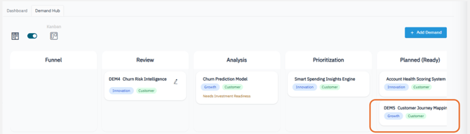 Once a demand is selected for execution, it moves to the Planned stage (also referred to as the Ready stage), signaling official approval for implementation.