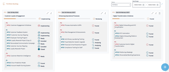 The Portfolio Backlog provides a centralized view to manage and update your portfolios — ensuring strategic alignment and execution readiness.