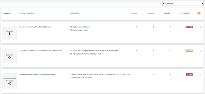 Strategic Goals organized by Perspective and grouped under Strategic Themes