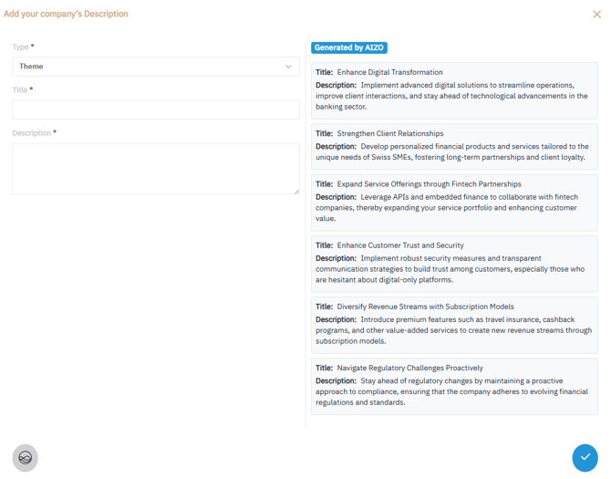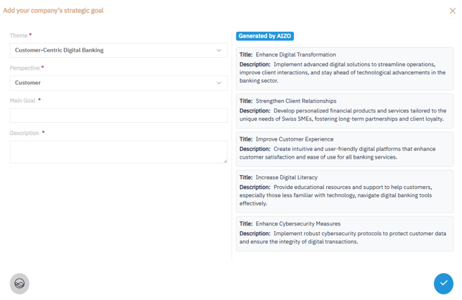 1. Click to open the "Add your company's strategic Goal" dialog box.