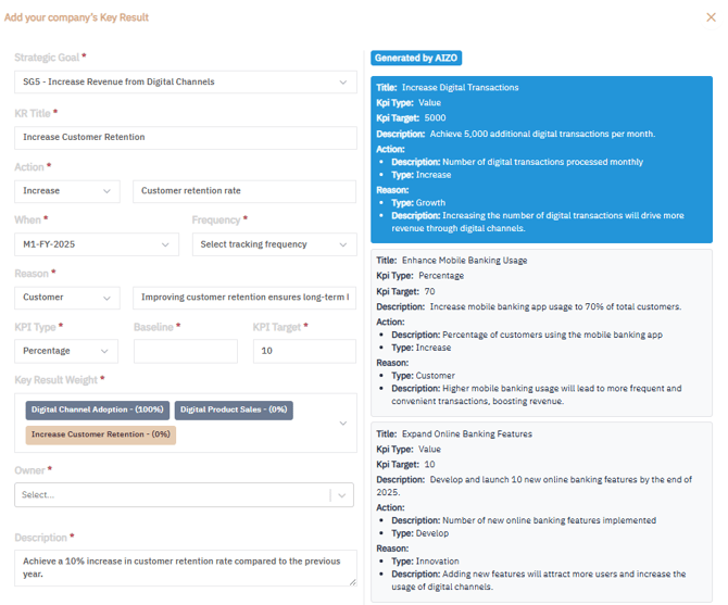 • Strategic Goal: Choose the Strategic Goal this Key Result is linked to from the scrolling list.