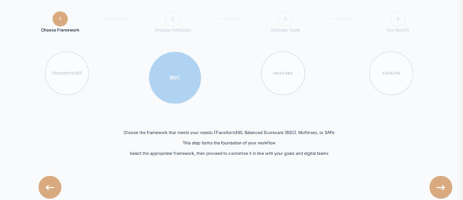 Once  all your strategy attributes are defined, Click the Next arrow icon   to move to the next stage  where you will define your Strategy Goals