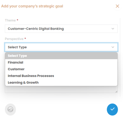 Choose the perspective corresponding to the strategic goal you wish to add.