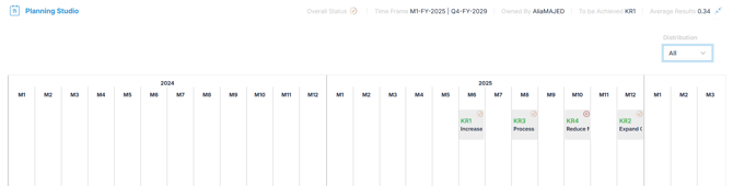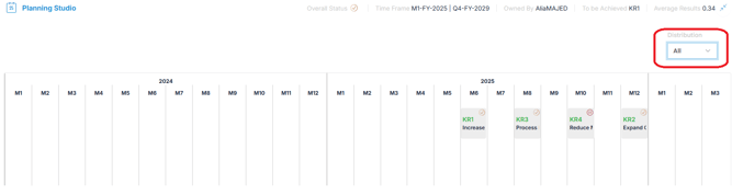 The Planning Studio offers an interactive, timeline-based view that helps you visualize all your key results and their alignment with strategic goals. It enables you to monitor progress at a glance and adapt plans as priorities shift.