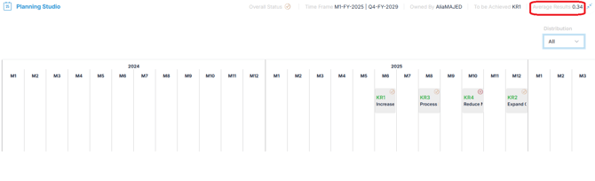 Monitoring the Average Results allows you to forecast whether your strategic OKRs are progressing well enough to be achieved within the planned horizons.
