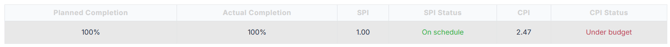 In addition to cost, it's essential to monitor your project’s Schedule Performance Index (SPI) to evaluate progress against the planned timeline.