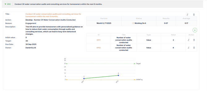The Performance Management Studio enables you to track the progress of Key Results (KRs) across your program. This tool helps program managers monitor strategic execution in real time by capturing performance data, visualizing trends, and scoring progress on a 0 to 1 scale. By regularly updating KRs, you can ensure alignment with strategic goals, identify performance gaps, and make informed, data-driven decisions.