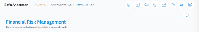 This dashboard operates at portfolio level, while consolidating financial risks originating from programs and projects.