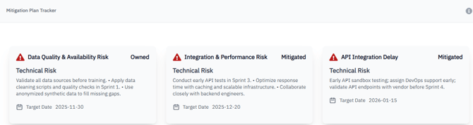 The Mitigation Plan Tracker tracks the progress of mitigation plans for key financial risks.
