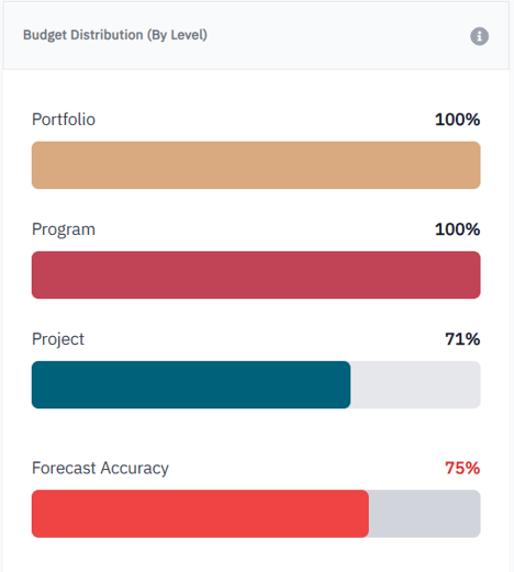 Shows how the total budget is distributed across portfolio, program, and project levels.