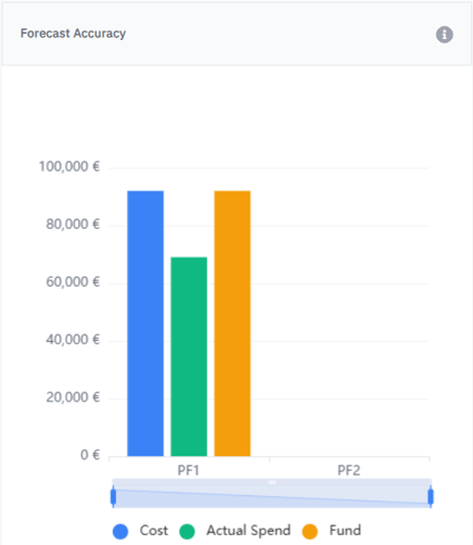 Forecast Accuracy is calculated as Total Spend / Total Funding