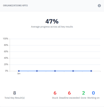 Shows the average completion percentage across all KRs