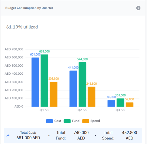 💡 Enables PMO and Program Managers to monitor budget consumption trends and anticipate overruns or underutilization.