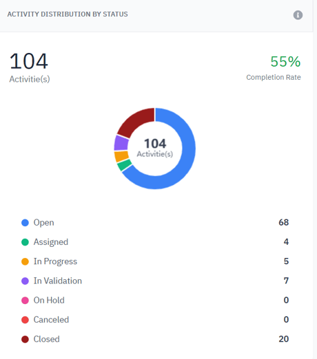 Displays the distribution of all project activities by execution status:
