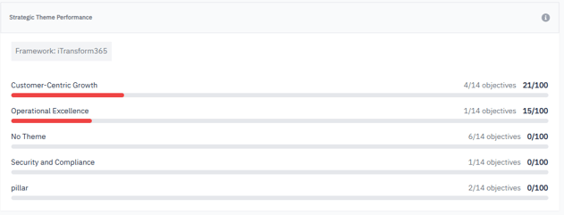 This view shows the progression of each Strategic Theme by aggregating the performance of its associated Strategic Objectives.