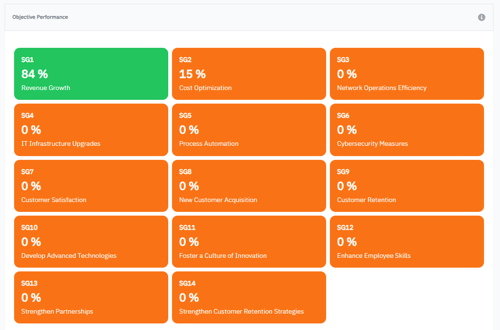 Each tile displays the performance score of a Strategic Objective based on all its linked KRs.